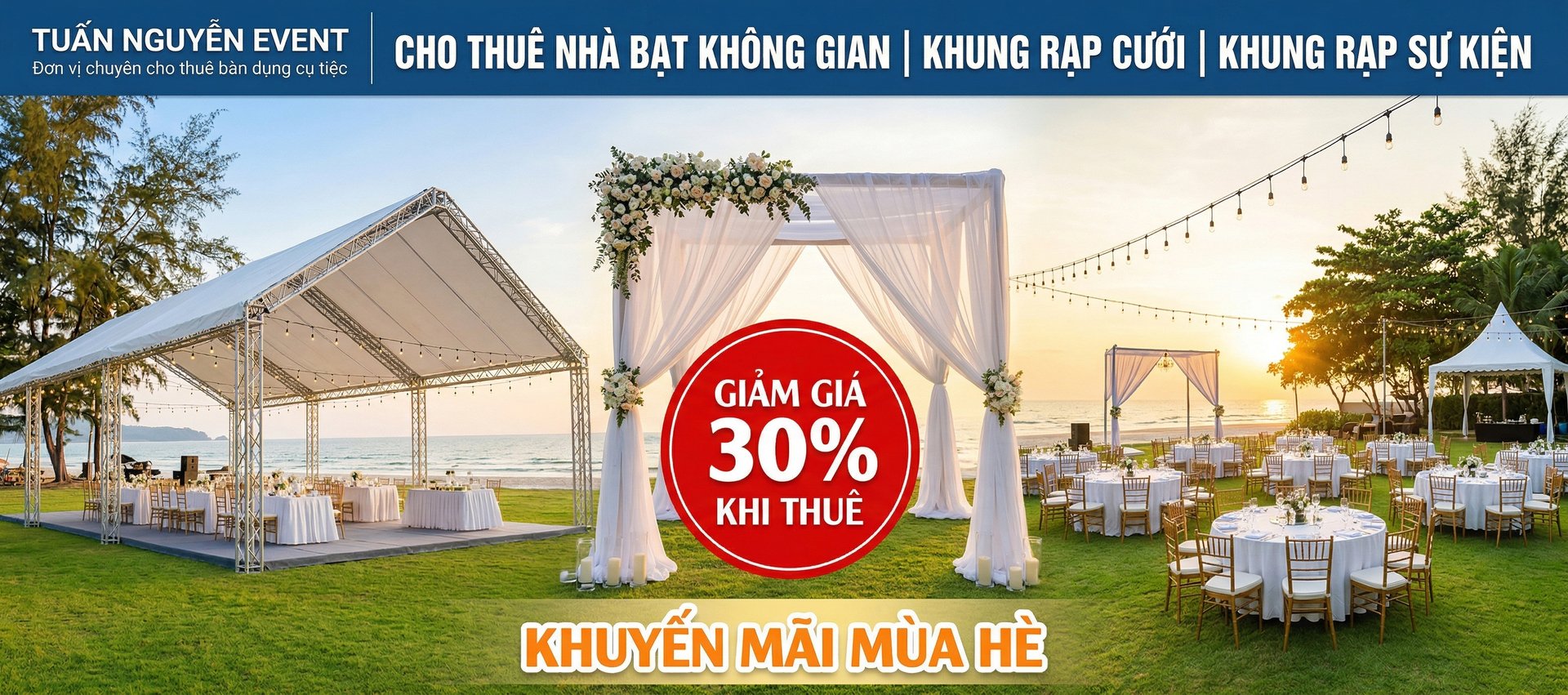 Trong quá trình tổ chức các sự kiện lớn nhỏ – từ hội nghị, khai trương, tiệc cưới cho đến sinh nhật, gala dinner,… thì việc chuẩn bị bàn ghế, không gian tổ chức cũng như dụng cụ đi kèm đóng vai trò vô cùng quan trọng. Một sự kiện thành công không chỉ nhờ nội dung hấp dẫn mà còn nhờ không gian được sắp xếp chuyên nghiệp, đẹp mắt và tạo cảm giác thoải mái cho khách mời.